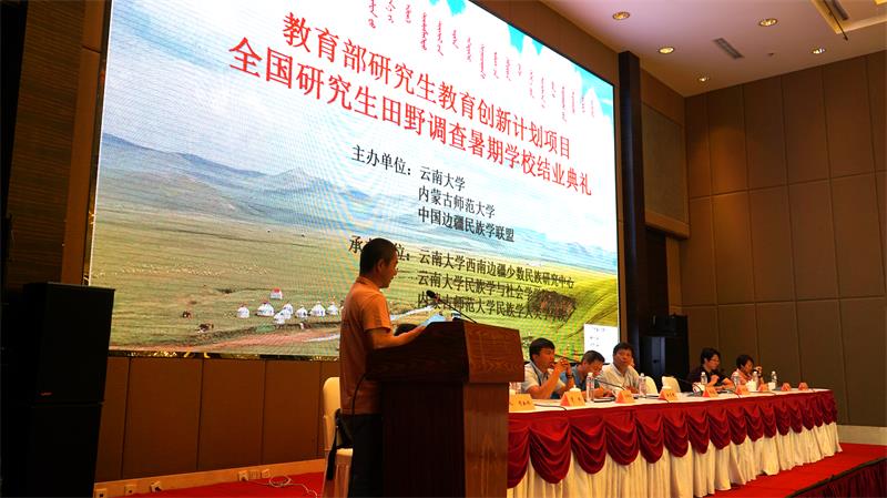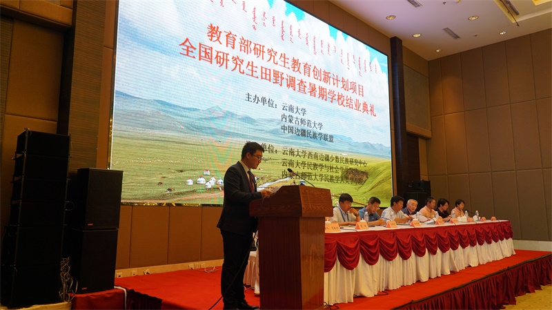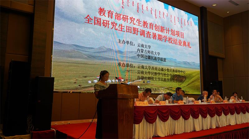 8月13日上午 9点,由云南大学、新葡萄官网AMG、中国边疆民族学联盟主办,云南大学民族学与社会学学院、新葡萄官网AMG承办的“教育部研究生教育创新计划项目全国研究生田野调查暑期学校(第十一期)”结业典礼在新葡萄官网AMG隆重举行。一百多位顺利完成在内蒙古自治区9个调研点田野调查的全国各高校、科研院所的硕士、博士研究生参加了本届“田野调查暑期学校”结业典礼。