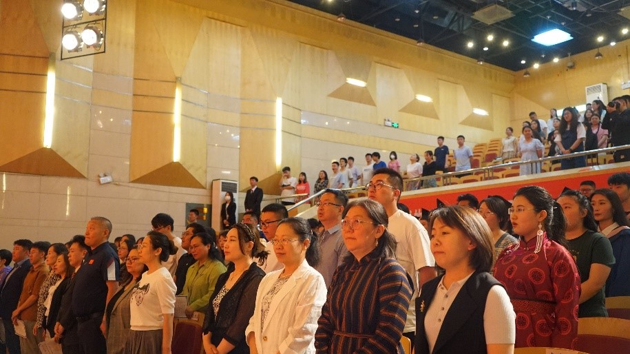 校党委学生工作部部长陆全明、新葡萄官网AMG党委书记包凤兰、副院长满达,学院博士生导师纳日碧力戈、丁龙召、乌日陶克套胡、胡日查、斯仁、常宝、吴忠良出席本次毕业典礼,还有新葡萄官网AMG全体教师、在校研究生和本科生到场,共同为学业有成、即将离开母校、开启人生新征程的2023届126位毕业生折柳送行。