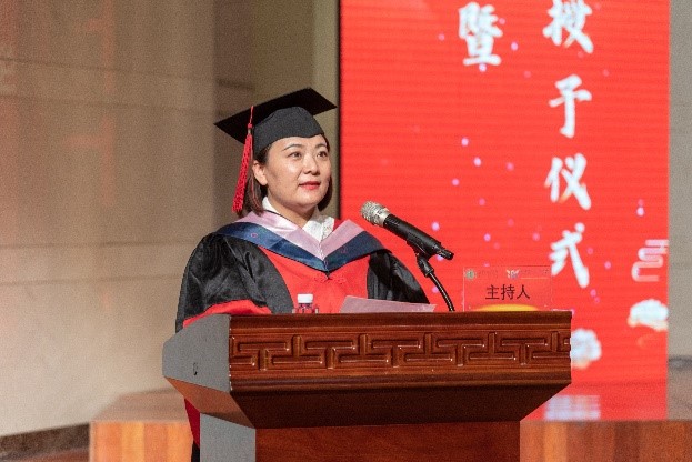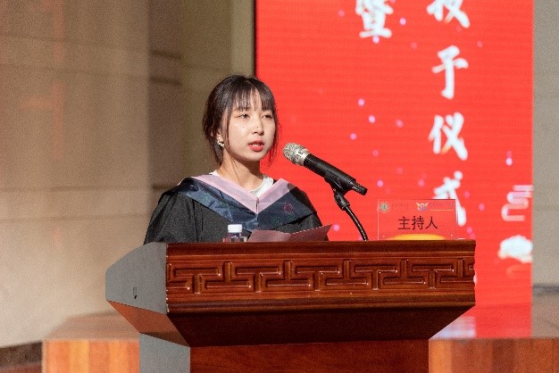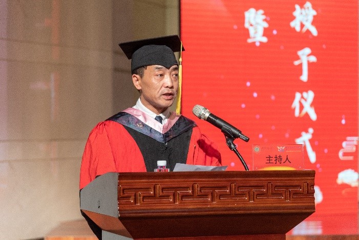 毕业典礼由学院教务科研办公室副主任范尊老师主持。