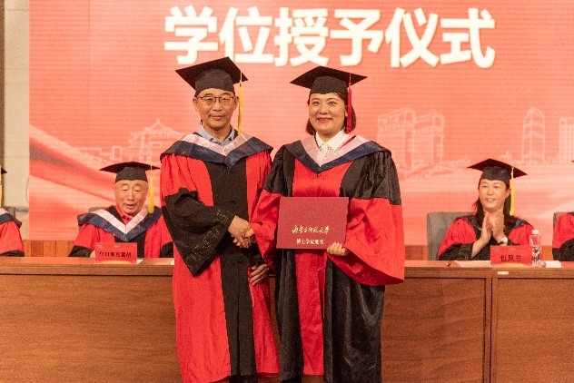 随后,学院党委书记包凤兰教授致辞,对毕业生取得优异成绩给予了肯定与赞扬,寄语毕业生要志存高远、锐意进取、勠力同心,厚植爱国情怀、传承民人精神、砥砺奋斗之志、勇担时代使命,“今日,你以学院为荣;明日,学院以你为傲!”