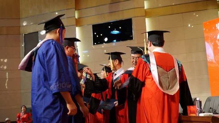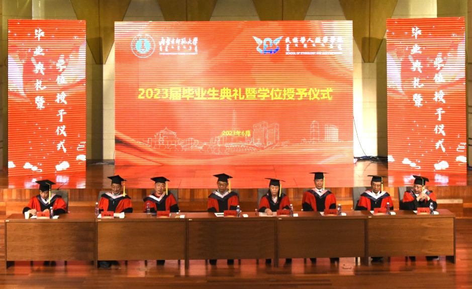 最后,由纳日碧力戈教授为博士毕业生授予博士学位并颁发证书。紧接着校领导及毕业生导师们为获得学位的毕业生进行拨穗,并颁发学位证书。现场所有师生一起观礼见证了这激动人心的时刻......