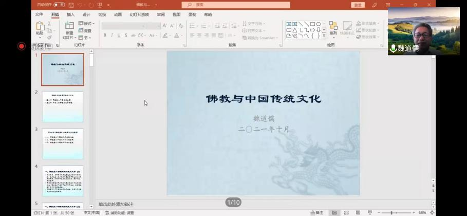 10月26日下午的“佛学文化研究院‘智慧甘露’系列讲座”由满达副院长主持,主讲人魏道儒先生做了题为“佛教与中国传统文化”的精彩讲座。在线参加此次学术活动的包括新葡萄官网20级民族学本科生和宗教学研究生,此外还有新葡萄官网与音乐学院、学报编辑部的10余位老师。